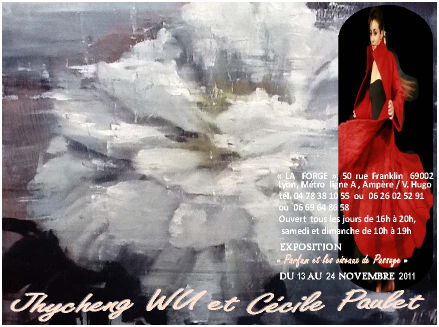 2011年11月13日起至2011年11月24日止,台灣旅法知名畫家巫日文將於里昂La Forge畫廊展出最新作品"Parfum香水"系列。本次同時展出的藝術家Mme. Cecile Paulet則展示以羊毛纖維氈料製作的獨特服裝設計"Les Oiseaux de Passages 候鳥"系列作品。